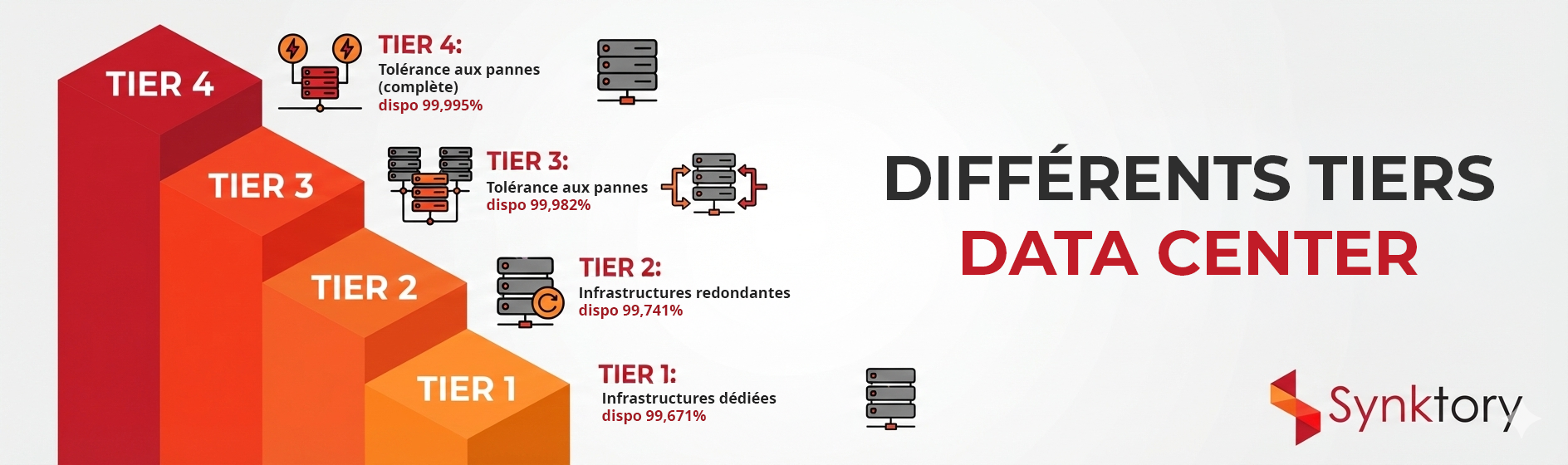 · La robustesse du Data Center : Renseignez-vous sur la classification « Tier » du centre de données (Tier 3 ou 4 garantissant une haute disponibilité voir notre schéma ci-dessous).