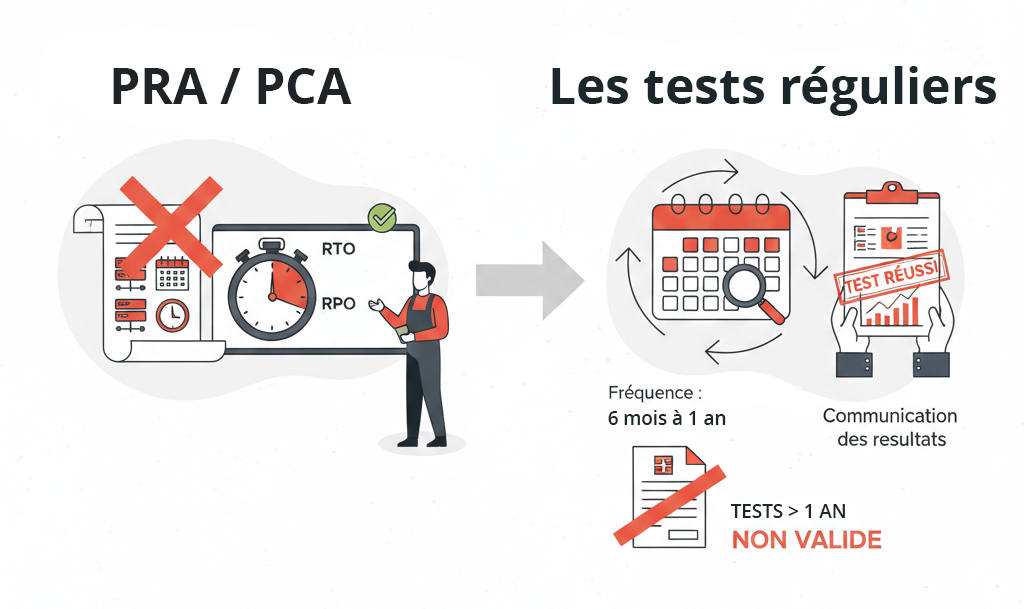 - La fréquence des tests : Un PRA non testé ne vaut rien. Votre partenaire doit tester son plan de secours au moins tous les 6 mois, voire 1 an, et être capable de vous communiquer les résultats de ces tests. Un test trop ancien n’est plus valide.
